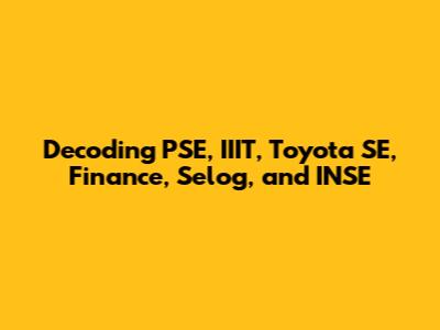 PSE, IIIT, Toyota SE, Finance, Selog, INSE Explained
