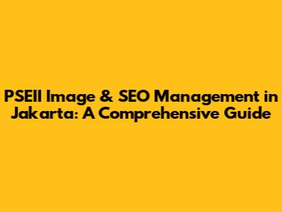 Hey guys! Let's dive into the fascinating world of PSEII Image & SEO Management in Jakarta. Whether you're a seasoned business owner or just starting out, understanding how to effectively manage your images and SEO is crucial for success in today's digital landscape. Jakarta, being a bustling hub of commerce and online activity, demands a strong online presence. This guide will break down everything you need to know, from the basics to advanced strategies, helping you navigate the complexities and get your business noticed. We'll explore the importance of optimizing images for search engines, how to implement effective SEO strategies in Jakarta, and how to stay ahead of the curve in this competitive market. Buckle up, because we're about to embark on a journey that will transform your online visibility! In this guide, we're not just throwing around jargon; we're providing practical, actionable advice that you can implement right away. We'll cover everything from image file formats and alt tags to keyword research and link building – all tailored to the Jakarta market. Our aim is to equip you with the knowledge and tools you need to not only survive but thrive in the digital jungle. So, let's get started and unlock the secrets to dominating the online space in Jakarta!