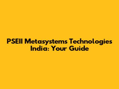 PSEII Metasystems Technologies India: Your Guide