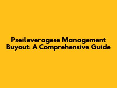 Pseileveragese Management Buyout: A Comprehensive Guide