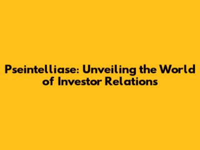 Pseintelliase: Your Guide To Investor Relations