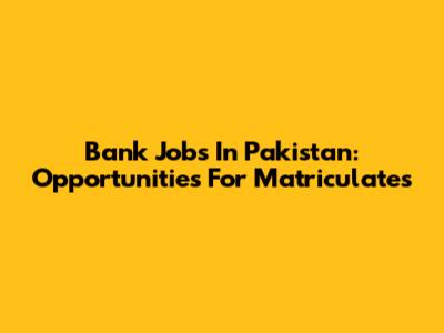 Bank Jobs In Pakistan: Opportunities For Matriculates