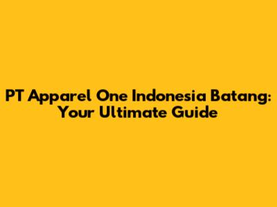 PT Apparel One Indonesia Batang: Your Ultimate Guide