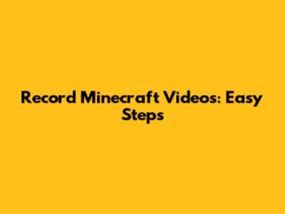 Record Minecraft Videos: Easy Steps
