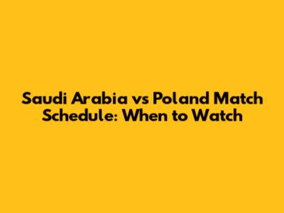 Saudi Arabia Vs Poland Match Schedule: When To Watch