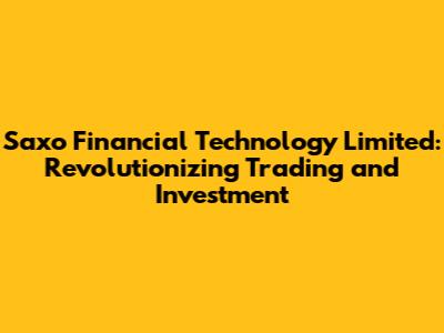 Hey guys! Ever heard of Saxo Financial Technology Limited? If you're into trading, investment, or just curious about how tech is changing the financial world, you're in for a treat. Saxo isn't just another name in the financial industry; it's a game-changer, a pioneer, and a leader in blending technology with finance. Let's dive deep into what makes Saxo so special, how it's reshaping the investment landscape, and why you should pay attention.