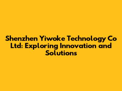 Shenzhen Yiwoke Technology: Innovations & Solutions Explored