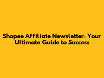 Shopee Affiliate Newsletter: Get The Best Deals & Boost Sales!