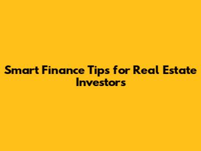 Smart Finance Tips For Real Estate Investors