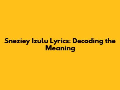 Sneziey Izulu Lyrics: Decoding The Meaning