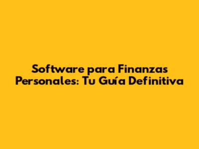 ¿Qué es el Software para Finanzas Personales y Por Qué lo Necesitas?