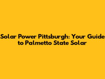 Solar Power Pittsburgh: Your Guide To Palmetto State Solar