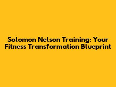 Solomon Nelson Training: Your Fitness Transformation Blueprint