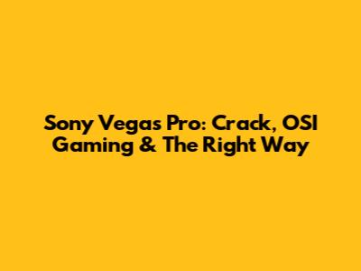 Sony Vegas Pro: Crack, OSI Gaming & The Right Way