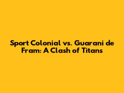 Get ready, sports fans! We're diving deep into the heart of an electrifying match between Sport Colonial and Guarani de Fram. This isn't just another game; it's a battle of strategy, skill, and sheer willpower. Whether you're a die-hard supporter or a casual observer, this showdown promises to deliver excitement and unforgettable moments. Let’s break down what makes this matchup so compelling and why you should be marking your calendars.