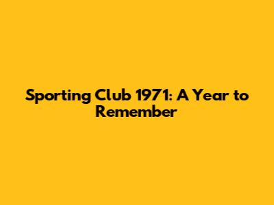 Sporting Club 1971: A Look Back At A Historic Year