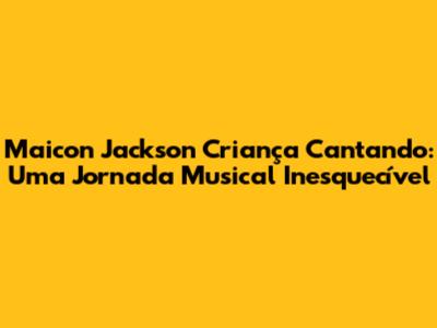 Maicon Jackson Criança Cantando: Uma Jornada Musical Inesquecível