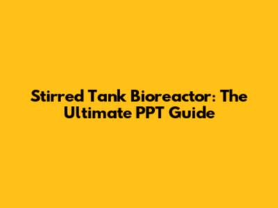 Stirred Tank Bioreactor: The Ultimate PPT Guide