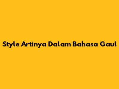 Style Artinya Dalam Bahasa Gaul