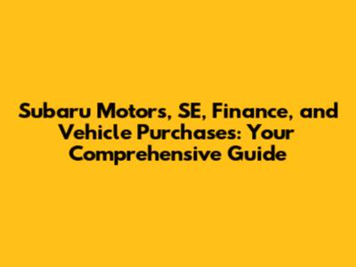 Hey everyone! Are you guys ready to dive deep into the world of Subaru Motors, focusing on the SE (Southeast) region, and exploring the ins and outs of financing and purchasing your dream car? This is going to be your go-to guide, covering everything from understanding Subaru's model lineup to navigating the finance process and making the best purchase decisions. I'll break it down for you in a way that's easy to understand, so whether you're a seasoned car buyer or a first-timer, you'll have all the info you need. Let's get started!