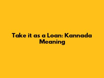 Take It As A Loan: Kannada Translation & Usage