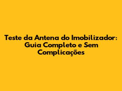 Teste Da Antena Do Imobilizador: Guia Completo