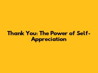 Thank You: The Power Of Self-Appreciation