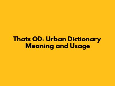That's OD: Urban Dictionary Meaning And Usage