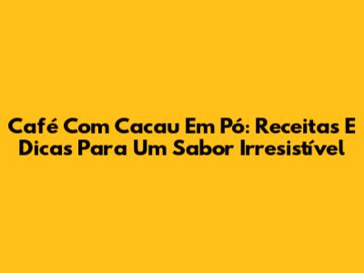 Café Com Cacau Em Pó: Receitas E Dicas Para Um Sabor Irresistível