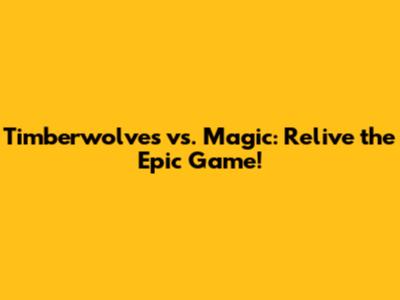Timberwolves Vs. Magic: Relive The Epic Game!