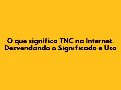 TNC Na Internet: Desvendando O Significado E Uso