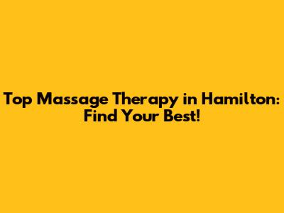 Top Massage Therapy In Hamilton: Find Your Best!