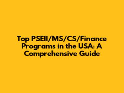 Top PSEII/MS/CS/Finance Programs In The USA