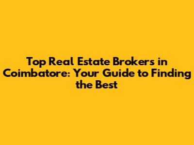 Finding Reputable Real Estate Brokers in Coimbatore: Where to Start