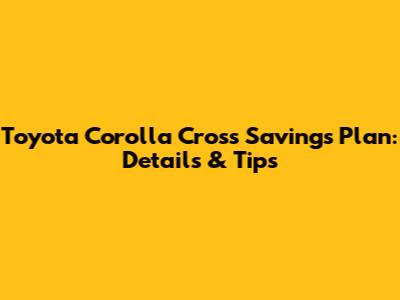 Toyota Corolla Cross: Savings Plan - Details & Tips