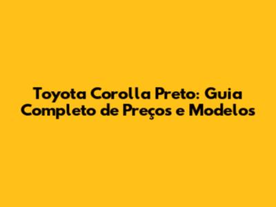 Toyota Corolla Preto é sinônimo de elegância, confiabilidade e valor de revenda. Se você está procurando um sedã que combine estilo, economia e segurança, o Corolla preto pode ser a escolha perfeita. Neste guia completo, vamos explorar tudo o que você precisa saber sobre o Corolla preto, desde os preços e modelos disponíveis até dicas de onde comprar e como negociar o melhor valor.