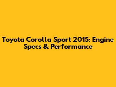 Toyota Corolla Sport 2015: Engine Specs & Performance