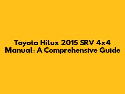 Toyota Hilux 2015 SRV 4x4 Manual: A Comprehensive Guide