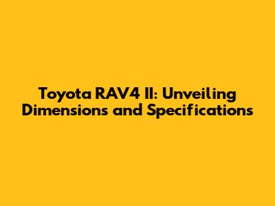 The Toyota RAV4 II stands as a testament to Toyota's commitment to quality, reliability, and practicality. Its well-balanced dimensions, spacious interior, and capable engine options make it a versatile SUV that caters to a wide range of needs. Whether you're navigating city streets or exploring off-road trails, the Toyota RAV4 II offers a comfortable and confident driving experience. From its compact exterior dimensions to its thoughtfully designed interior, every aspect of the Toyota RAV4 II is crafted to enhance functionality and convenience. Its ample cargo space and flexible seating configurations make it a practical choice for families, while its fuel-efficient engine options make it an economical choice for daily commuting. The Toyota RAV4 II is more than just an SUV; it's a reliable companion that's ready for any adventure. Its durable construction, proven reliability, and timeless design have made it a favorite among car enthusiasts and everyday drivers alike. So, if you're looking for a versatile, reliable, and practical SUV, the Toyota RAV4 II is definitely worth considering. Its well-balanced dimensions and specifications make it a standout choice in its class, offering a blend of comfort, performance, and value that's hard to beat. As you explore the world of SUVs, remember the Toyota RAV4 II as a benchmark of quality and innovation. Its legacy continues to inspire and influence the design of modern SUVs, making it a true icon in the automotive industry.