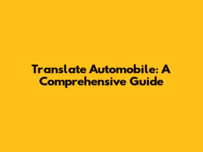 Translate Automobile: A Comprehensive Guide