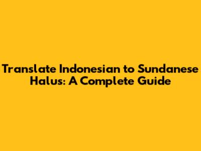 Translate Indonesian To Sundanese Halus: A Complete Guide