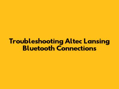 Troubleshoot Altec Lansing Bluetooth Connection