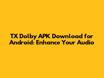 TX Dolby APK Download For Android: Enhance Your Audio