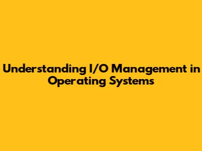 Understanding I/O Management In Operating Systems