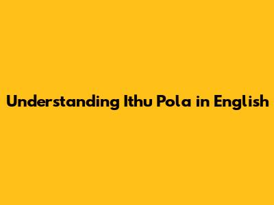 Understanding Ithu Pola In English