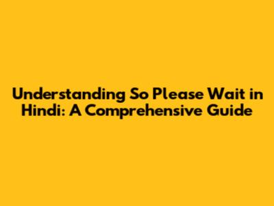 Understanding 'So Please Wait' In Hindi: A Comprehensive Guide