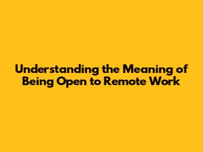 Understanding The Meaning Of Being Open To Remote Work