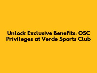 OSC Privileges at Verde Sports Club offer a gateway to an enhanced and exclusive lifestyle. By understanding the benefits, maximizing your usage, and actively participating in the community, you can unlock a world of convenience, luxury, and unforgettable experiences. So, go ahead and embrace the OSC life – you deserve it!
