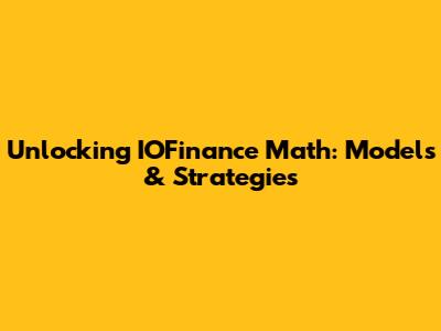 Unlocking IOFinance Math: Models & Strategies