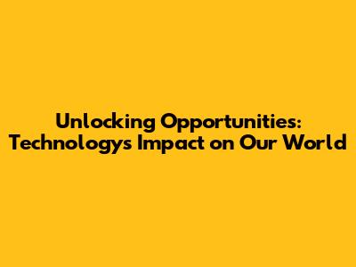 Unlocking Opportunities: Technology's Impact On Our World